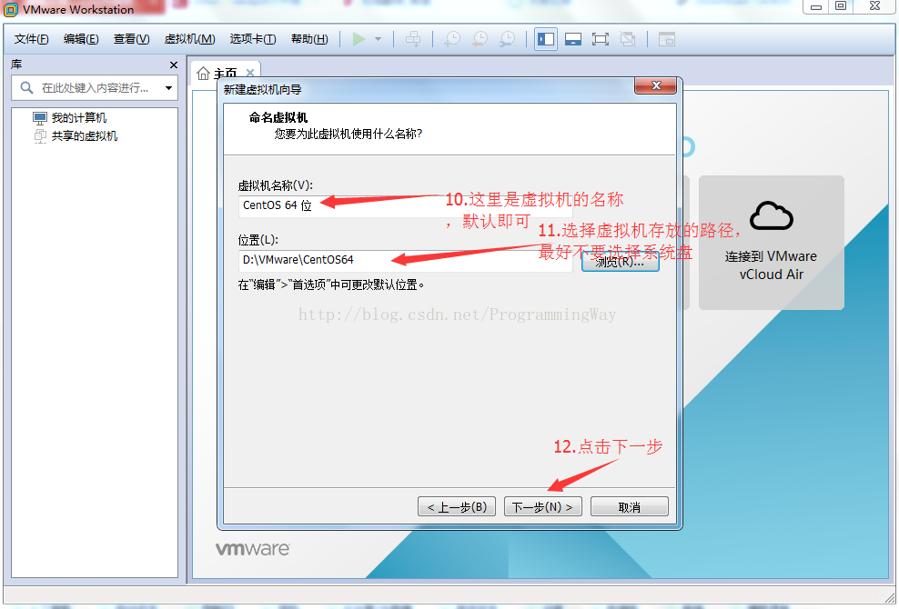 第五步:虛擬機(jī)名稱(chēng)可以用默認(rèn)名稱(chēng),選擇虛擬機(jī)存放的路徑,最好不要存放在系統(tǒng)盤(pán),點(diǎn)擊下一步;