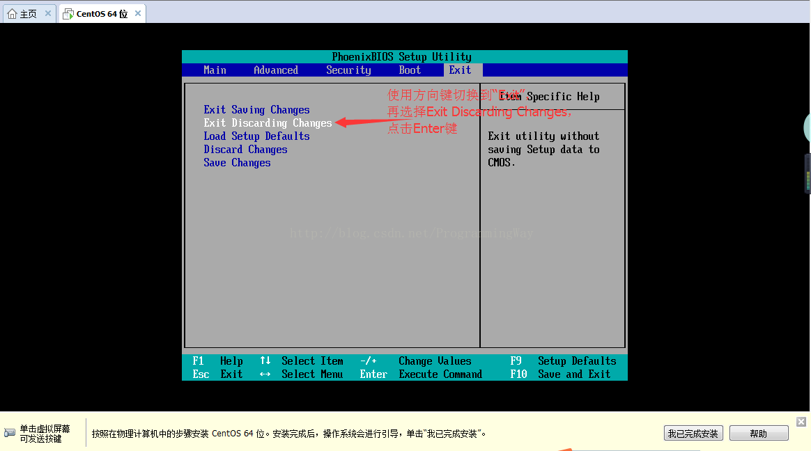第十一步:使用方向鍵切換到Exit,選擇Exit Discarding Changes,點(diǎn)擊回車(chē),選擇Yes,再點(diǎn)擊回車(chē);