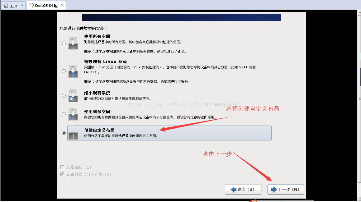 第二十二步:選擇創(chuàng)建自定義布局,點(diǎn)擊下一步;