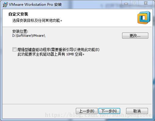 3.選擇”安裝位置”?!痹鰪?qiáng)型鍵盤驅(qū)動(dòng)程序”選項(xiàng)說(shuō)明:增強(qiáng)型虛擬鍵盤功能可更好地處理國(guó)際鍵盤和帶有額外按鍵的鍵盤,此功能只能在 Windows 主機(jī)系統(tǒng)中使用。由于增強(qiáng)型虛擬鍵盤功能可盡可能快地處理原始鍵盤輸入,所以能夠繞過(guò) Windows 按鍵處理和任何尚未出現(xiàn)在較低層的惡意軟件,從而提高安全性。使用增強(qiáng)型虛擬鍵盤功能時(shí),如果按下 Ctrl+Alt+Delete,只有客戶機(jī)操作系統(tǒng)會(huì)做出反應(yīng)。點(diǎn)擊”下一步”