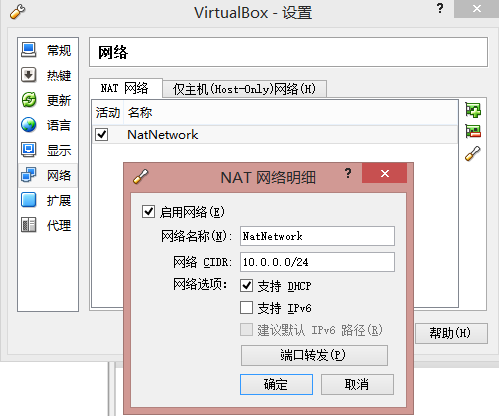 1. 打開Vbox, 選擇“管理”菜單->”全局設定” ->網絡,設置兩張網卡參數(shù);