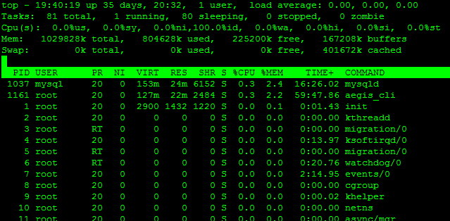 運(yùn)行top命令的結(jié)果如下: