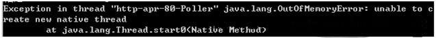注意maxThreads數(shù)不應(yīng)調(diào)整過(guò)大,容易產(chǎn)生如下錯(cuò)誤: