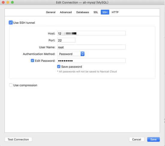 填寫ssh連接信息: