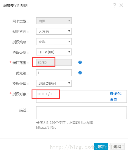 5.4 端口范圍格式為 80/80 ,授權對象可以查看“教我設置”,這里設置的是0.0.0.0/0,允許任何對象訪問。