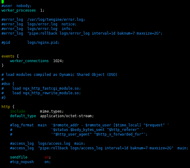 3.然后打開nginx.conf,果然有顏色了,呵呵。