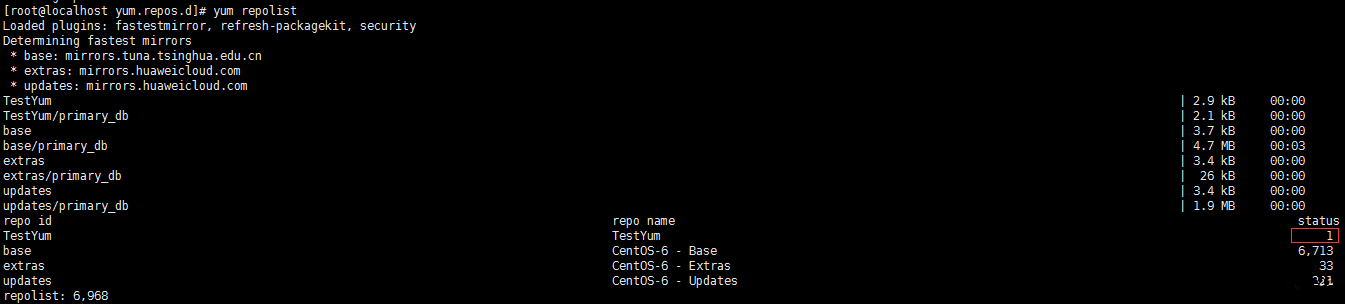 [root@localhost yum.repos.d]# cat test.repo [TestYum] name=TestYum baseurl=http://192.168.149.129/src gpgcheck=0 enabled=1