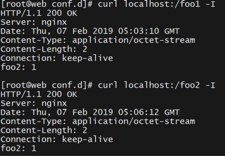 不管請求/foo1還是/foo2,最終header只有foo2: