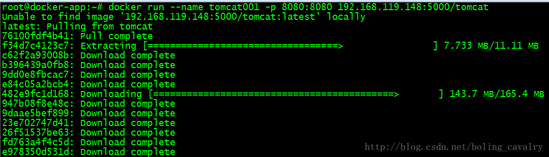 docker run --name tomcat001 -p 8080:8080 -idt 192.168.119.148:5000/tomcat