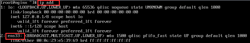 [root@nginx ~]# vi /etc/sysconfig/network-scripts/ifcfg-ens33