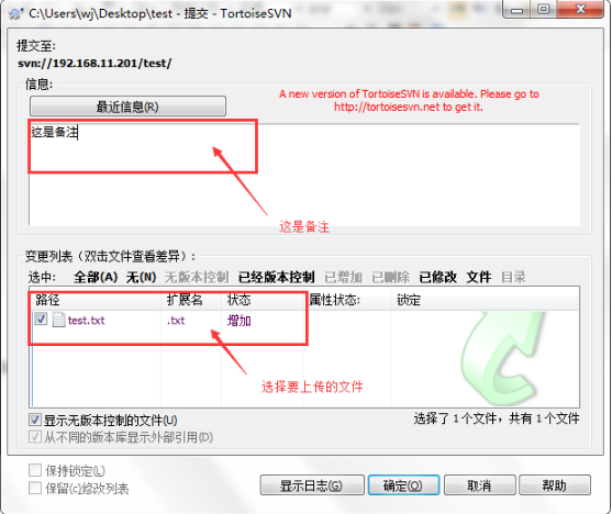 這時候我們可以看到test.txt文件上的加號會變成綠色的對號,表示上傳成功