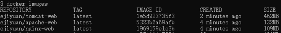 執(zhí)行 docker images 自己看結(jié)果 nginx 最小,Apache次之,tomcat 最大