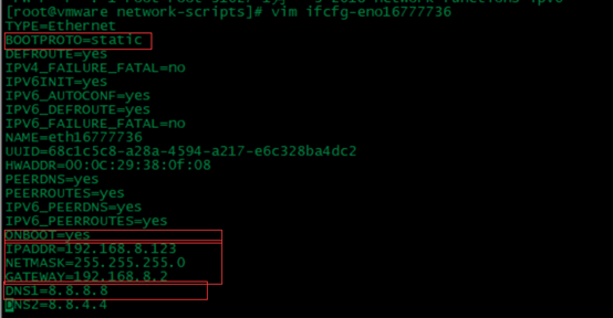 修改配置文件 vim ifcfg-eno16777736【系統(tǒng)不一樣,網(wǎng)卡的名稱也不一樣】