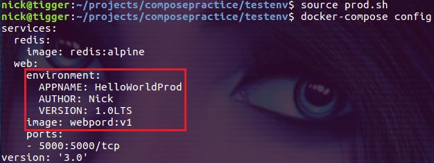 #!/bin/bash # define env var default value. export IMAGETAG=webpord:v1 export APPNAME=HelloWorldProd export AUTHOR=Nick Li export VERSION=1.0LTS