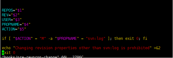 6、給上面pre-revprop-change腳本加上執(zhí)行權限,腳本如下: