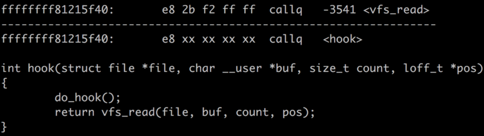 在這里當(dāng)發(fā)起read系統(tǒng)調(diào)用后,就會(huì)進(jìn)入到sys read,在sys read中會(huì)調(diào)用vfs read函數(shù),在vfs read的參數(shù)中正好有我們需要過濾的信息,那么就可以把vfs_ read當(dāng)做一個(gè)hook點(diǎn)。