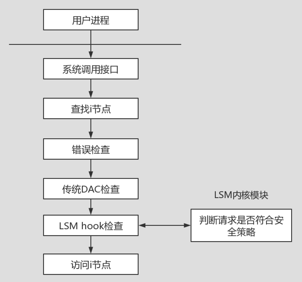 LSM是Linux Secrity Module的簡(jiǎn)稱,即linux安全模塊。是一種通用的Linux安全框架,具有效率高,簡(jiǎn)單易用等特點(diǎn)。原理如下: