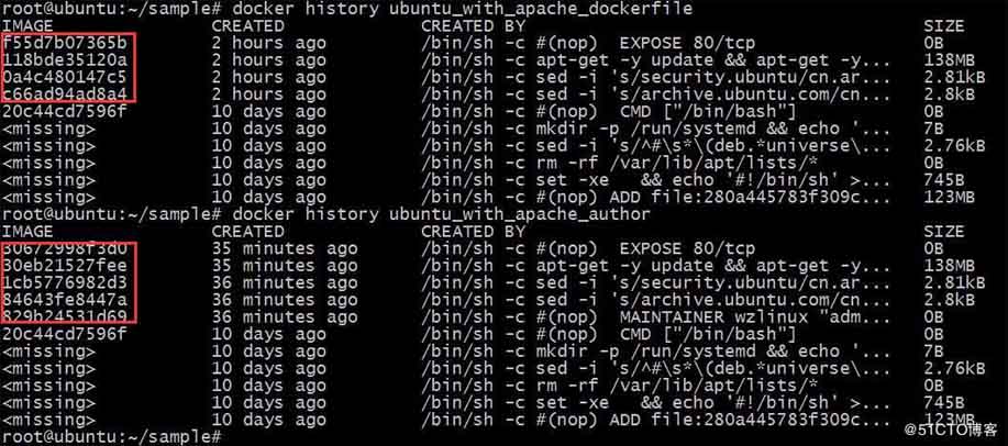 root@ubuntu:~/sample# docker images REPOSITORY TAG IMAGE ID CREATED SIZE ubuntu_with_apache_dockerfile latest f55d7b07365b 27 minutes ago 261MB wzlinux/ubuntu_with_apache latest 902ac2c87147 About an hour ago 261MB ubuntu latest 20c44cd7596f 10 days ago 123MB