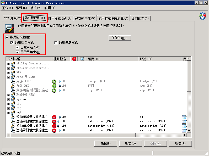 3.2. 檢查McAfee HIP防火墻