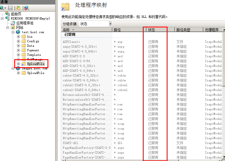 將網站的相關文件夾都按上面方法檢查一下,另外對于JS、CSS、Images、配置、日志、HTML等不用執(zhí)行的目錄,雖然沒有設置有寫入權限,最好也將它們設置成無腳本執(zhí)行限制