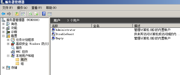 打開服務器管理器,檢查帳號是否為默認的幾個,是否有多出新的帳號來(一般服務器給入侵后,都會另外創(chuàng)建了一些新帳號或將一些原本隸屬于Guest組的帳號提升為管理員或User等組權限)