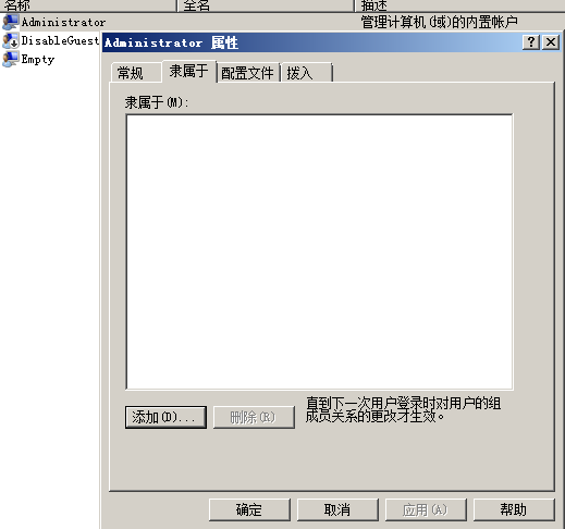 查看Administrator帳號隸屬組是否為空