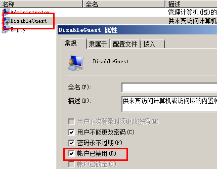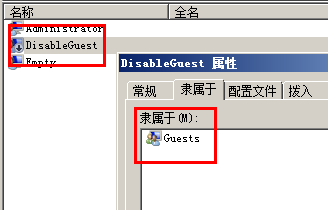 檢查DisableGuest帳號是否隸屬于Guests,且?guī)ぬ柺欠袷墙脿顟B(tài)
