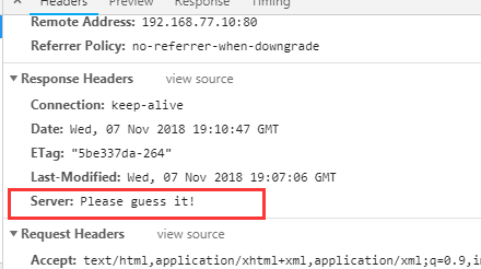 [root@node1 nginx-1.14.1]# curl -I http://127.0.0.1 HTTP/1.1 200 OK Server: Please guess it! Date: Wed, 07 Nov 2018 19:15:43 GMT ......