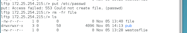 selinux打開狀態(tài)下,我們通過登陸ftp測試selinux對服務(wù)的開關(guān)作用。