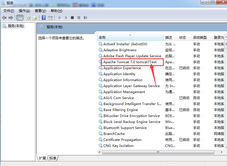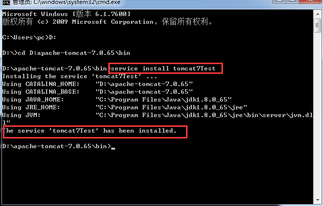 tomcat7Test是服務(wù)名,可以隨便取值,默認(rèn)為tomcat7,可以看到服務(wù)已經(jīng)成功安裝,接下來(lái)取服務(wù)里面