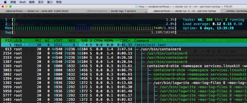 $ docker build -t myhtop . #構(gòu)建鏡像 $ docker run -it --rm --pid=host myhtop #與 host 進程運行于同一個命名空間