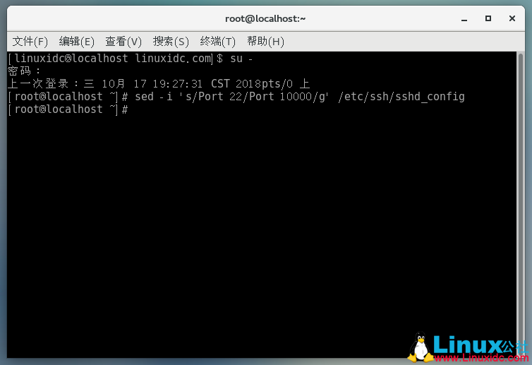 在此示例中,/etc/ssh/sshd_config文件中Secure Shell服務(wù)器中使用的端口號(hào)從默認(rèn)端口22更改為端口10000。