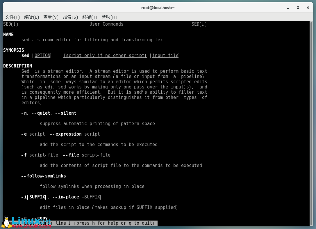 要查看更高級(jí)的示例,請(qǐng)使用man sed命令。 它提供了更詳細(xì)的命令和語(yǔ)法分解。