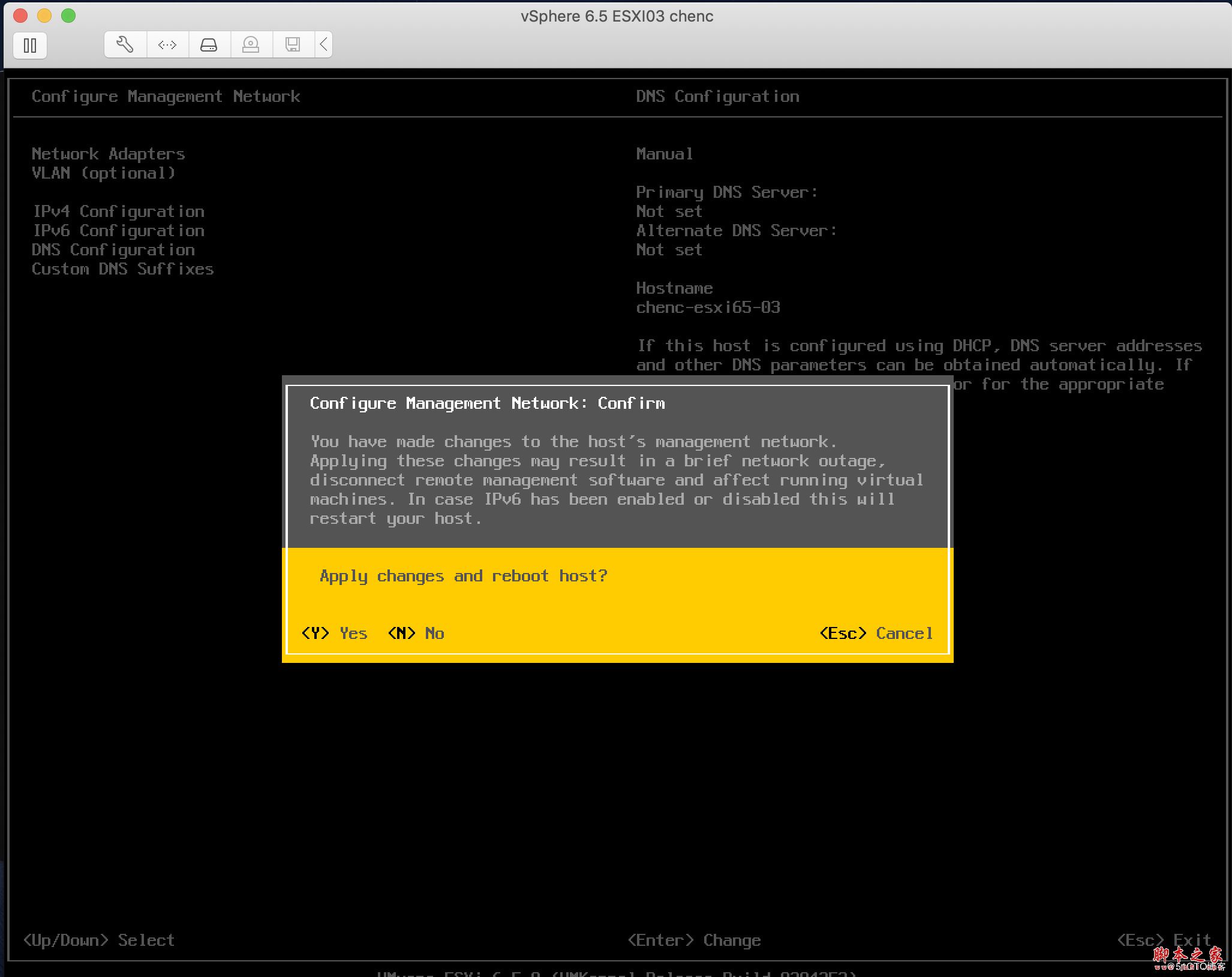 Step 14:可以選擇修改管理網(wǎng)絡(luò)網(wǎng)卡、VLAN、IPv4、IPv6、DNS、DNS域