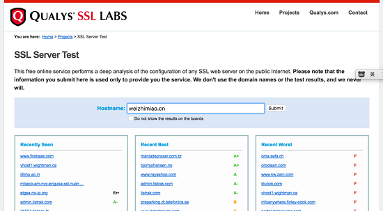 最后,用 SSLLABS 來進(jìn)行一下測試。