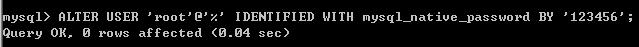 ALTER USER 'root'@'%' IDENTIFIED WITH mysql_native_password BY '123456';
