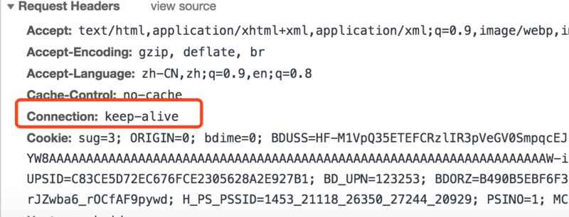 默認(rèn)http1.1協(xié)議的請(qǐng)求頭是默認(rèn)開(kāi)啟keepalive,如圖: