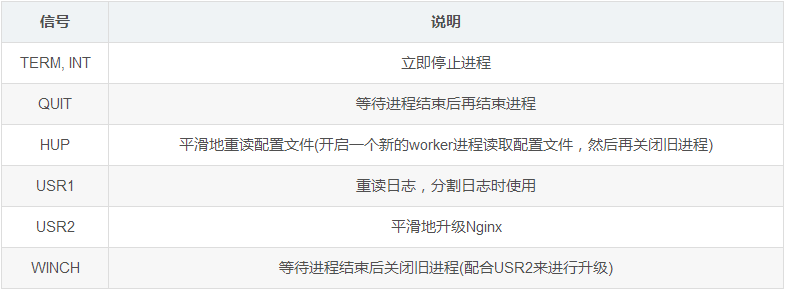 Nginx主進(jìn)程支持的信號(hào)如下: