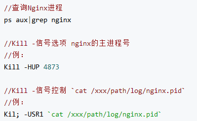 TERM,INT :kill -TERM(INT) nginx主進(jìn)程號(hào)或者kill -TERM(INT)