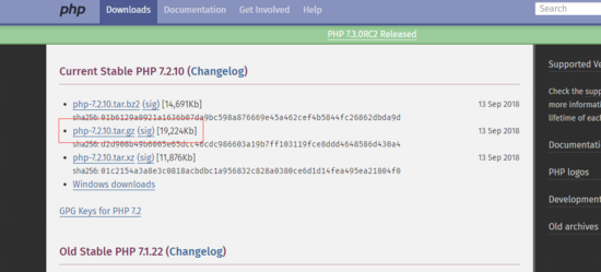 下載文件: wget http://tz1.php.net/distributions/php-7.2.10.tar.gz