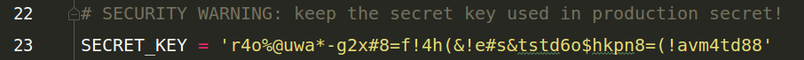 2.項目安全碼,項目要啟動必須要有它,Django在創(chuàng)建時會自動生成這個東西。