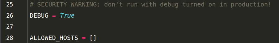 代碼肯定有bug,如果DEBUG = True,就會直接把異常傳給網(wǎng)頁前端,一般在寫代碼時打開,方便找錯,但在實際生產(chǎn)中肯定要關(guān)掉,不能給用戶看到這個。ALLOWED_HOSTS = [ ]:如果在里面添加?xùn)|西:如ALLOWED_HOSTS = [ localhost ],Django則只允許通過localhost訪問頁面,其他的都被屏蔽了,127.0.0.1也就不行了。