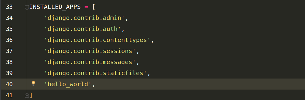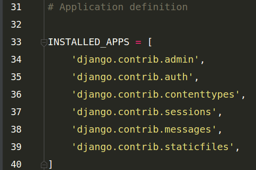 這里面時Django自帶的一些應(yīng)用,我們創(chuàng)建應(yīng)用后要把名稱寫在這個里面,才能被Django識別,不然它不認識。