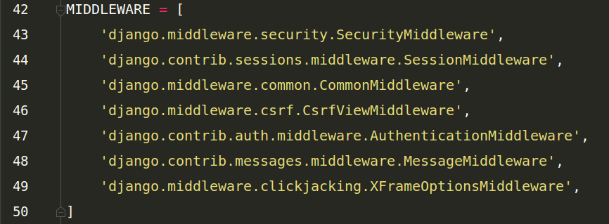 5.MIDDLEWARE = [ ]:翻譯過來中文名叫中間件。