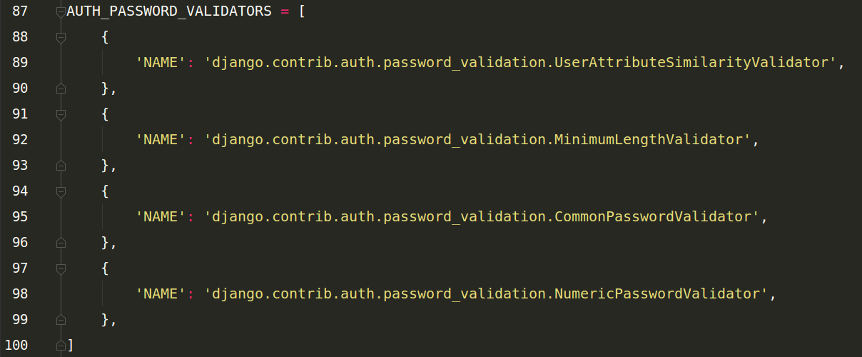 10.AUTH_PASSWORD_VALIDATORS = [ ],密碼認證有關(guān),現(xiàn)在不用管它。