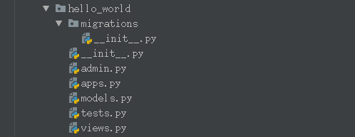 切換到和manage.py的同級目錄中,命令行輸入python3 manage.py startapp hello_world 或 python3 manage.py startapp hello_world,就創(chuàng)建好了一個名為hello_world的應(yīng)用。文件結(jié)構(gòu)為: