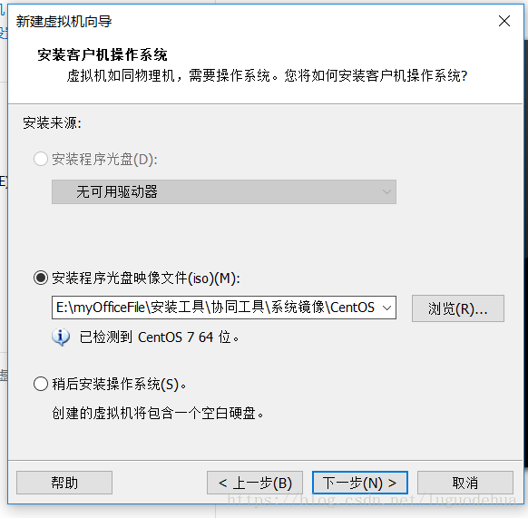 (3)選擇Centos的iso,點擊“下一步”: