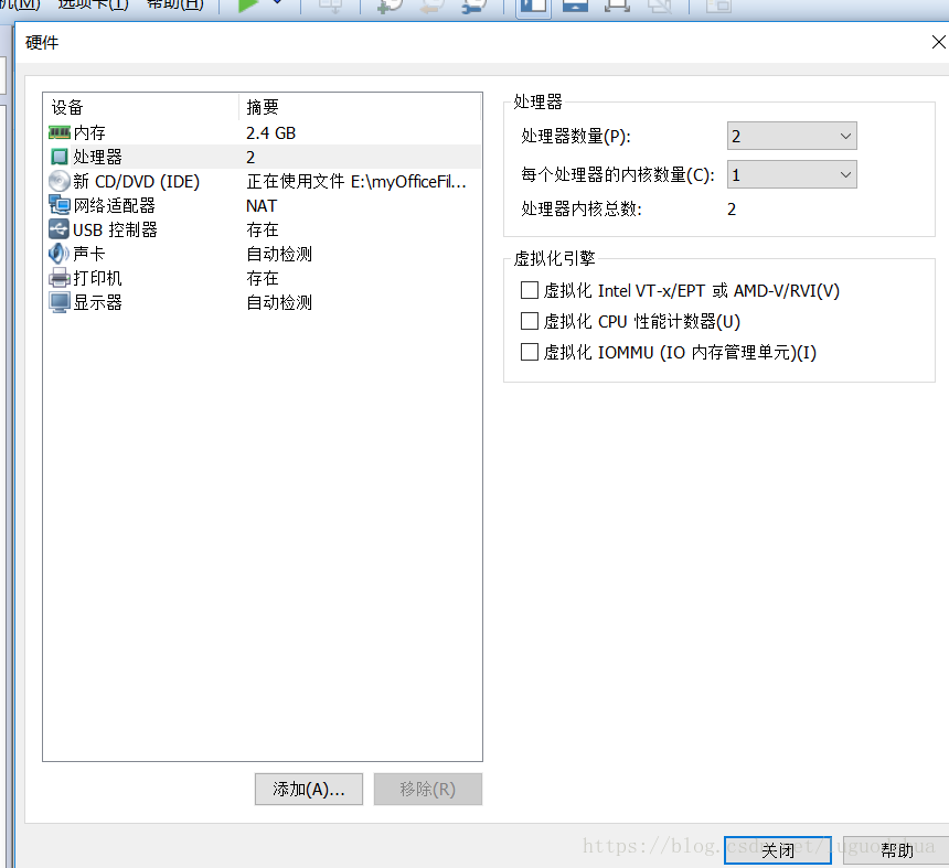 (7)軟件默認為1個cpu1核,條件好點的可以加到兩核。點擊“關(guān)閉”。