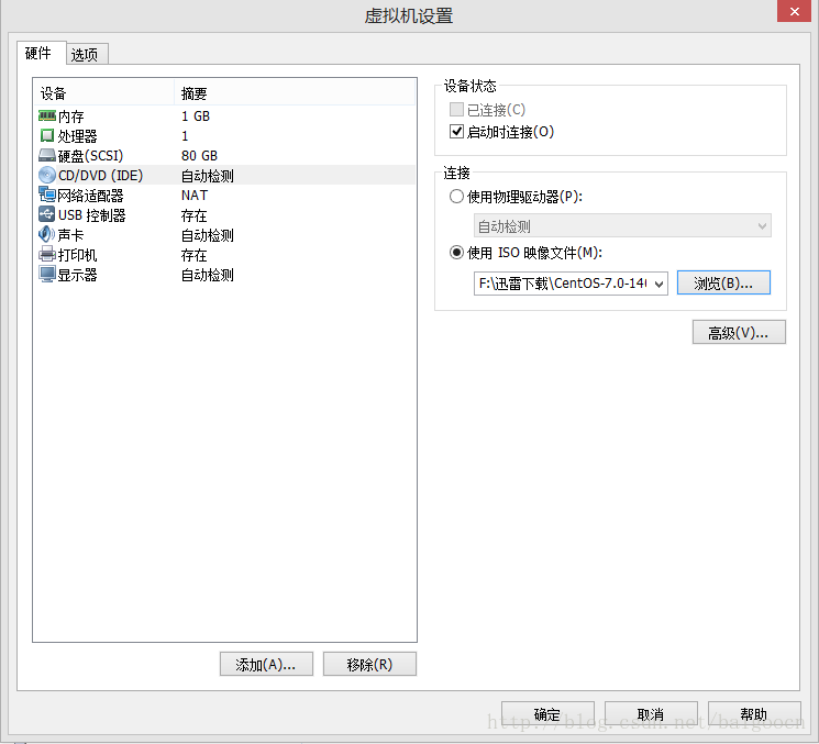 2、初始工作完成后,選擇所需的CentOS 7 ISO鏡像,點擊"開始啟動此虛擬機",然后進入安裝界面。