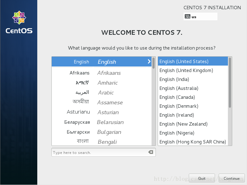 3、選擇安裝過程中的語言,此處選擇英文,默認即可